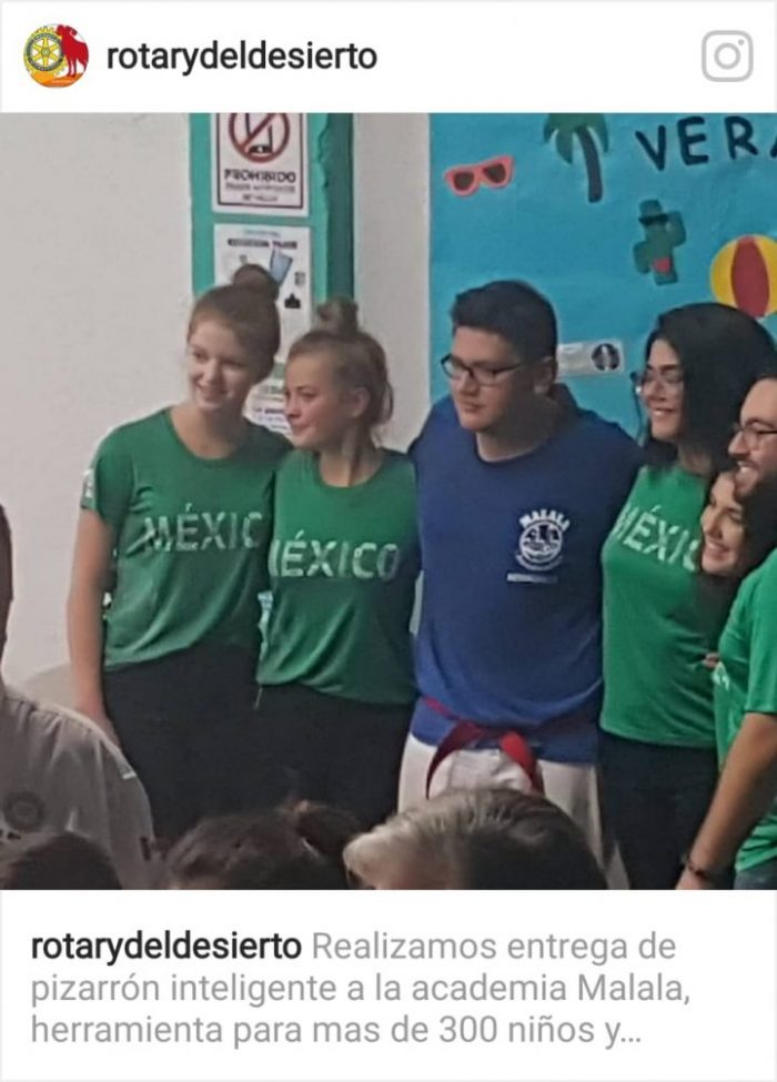 Club Rotario Hermosillo del Desierto, en presencia de Jaudiel Ruiz (presidente ) se entrego este pasado viernes 31 de agosto, a la academia Malala Hermosillo, un proyector y pizarrón inteligente, que servirá como refuerzo para tareas y estudios de mas de 300 niños y adolescentes que visitan dicha academia; en este evento se contó con la participación de jóvenes de intercambio: